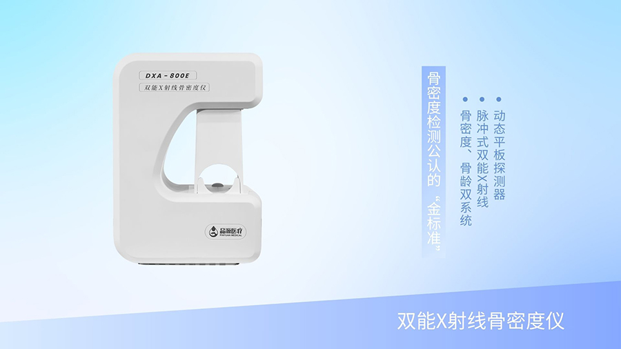 全新雙能X射線骨密度儀DXA-800E,創(chuàng)新融合骨密度檢測與骨齡評估兩大系統(tǒng),以一機(jī)之力,構(gòu)建覆蓋專業(yè)的骨骼健康管理平臺。