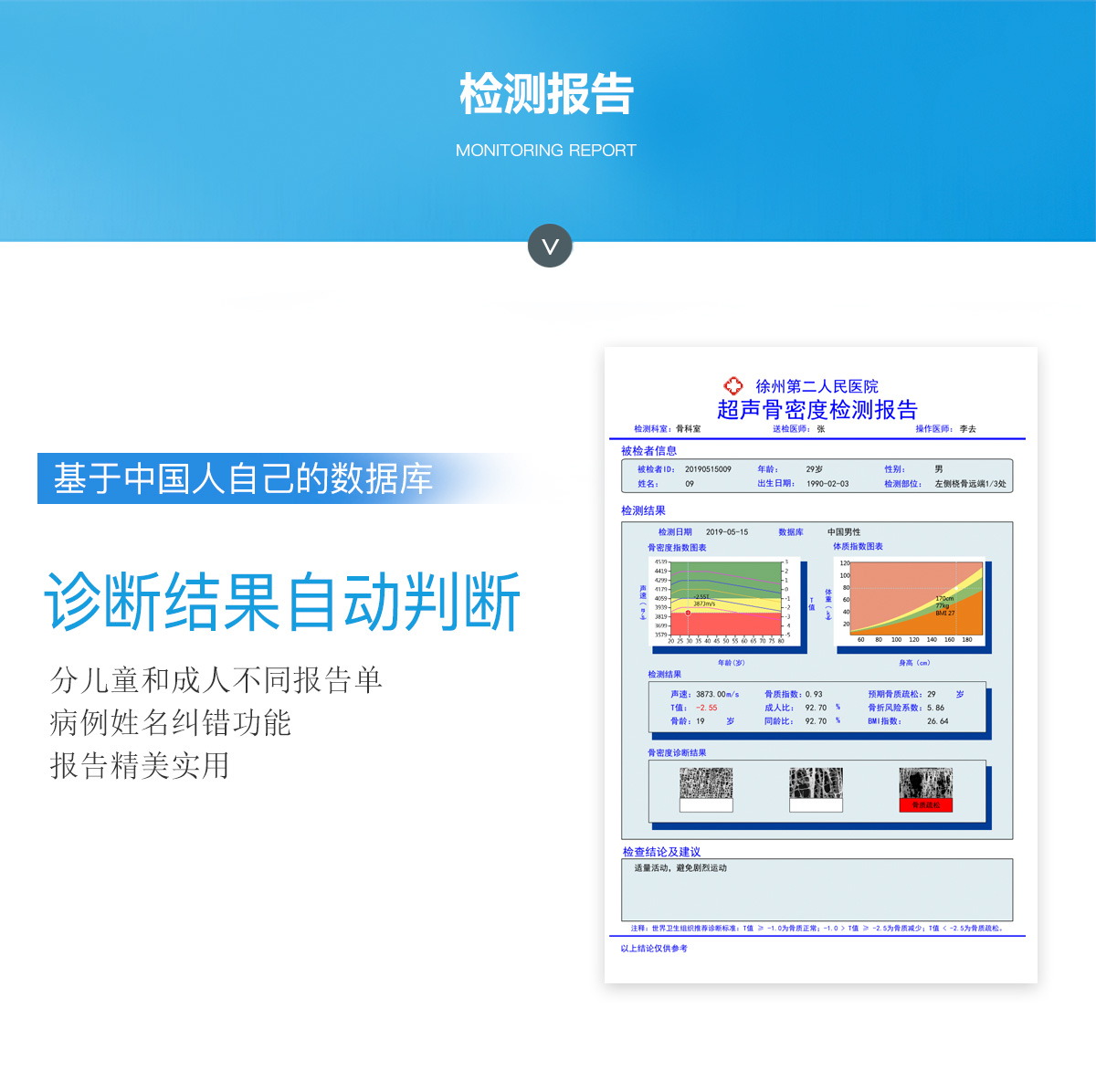 ■ 軟件優勢::BMD-A系列超聲骨密度檢測儀一臺儀器裝配有智能分析系統,經濟實用??蓽y量0-100歲人群。