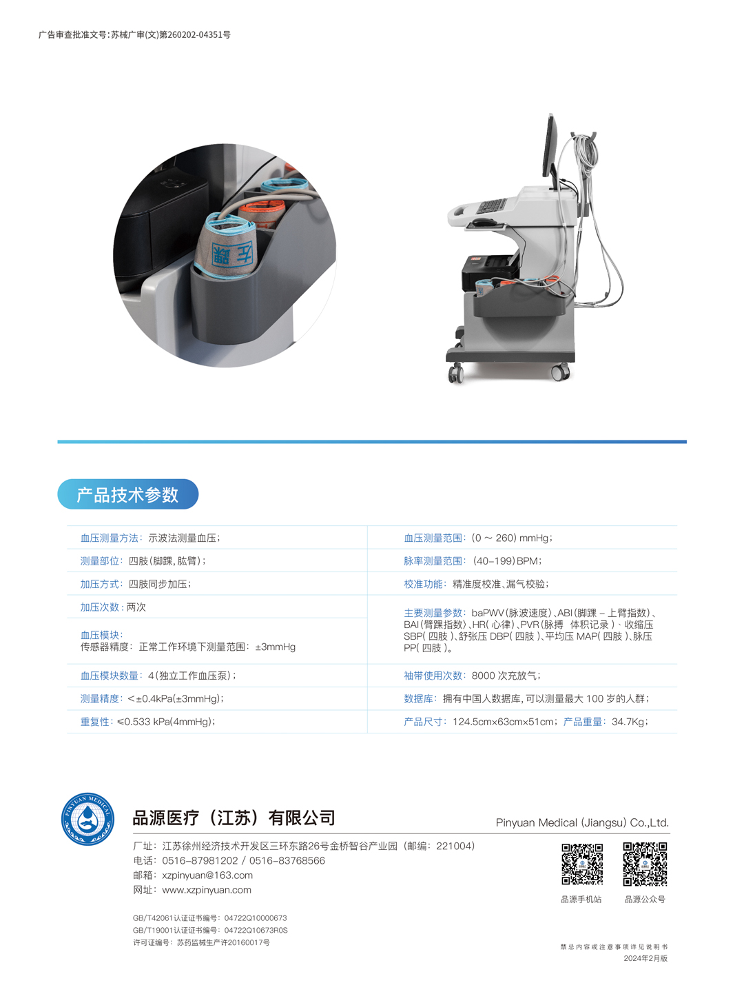 適用范圍:產(chǎn)品在醫(yī)生指導(dǎo)下,適用于受試對(duì)象下肢血管阻塞及血管彈性進(jìn)行檢測(cè)評(píng)估。